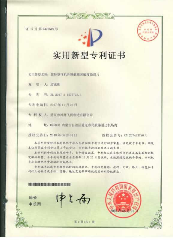 超輕型飛機(jī)升降舵高靈敏度微調(diào)片